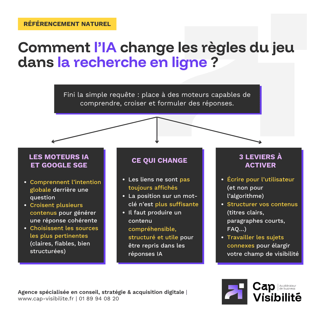 La visibilité ne se joue donc plus uniquement sur une position dans les résultats, mais sur la capacité d’un contenu à être compris et exploité par ces moteurs.